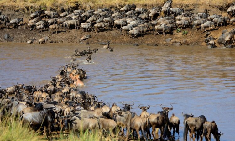 River Crossings Vs. Calving Season : What’s The Best Great Migration Event To See On Safari? Tanzania is known for its vast savannah, stunning landscapes, and diversified animals. Tanzania welcomes people from all over the world year-round thanks to its 22 national parks, each of which offers a distinct safari experience. Serengeti National Park is one of the most well-known and popular safari locations for visitors. Aside from the stunning scenery and plentiful wildlife, one prominent characteristic is at the top of every visitor’s wish list. The chance to watch the magnificent spectacle of The Great Migration, in which over two million wildebeest and hundreds of thousands of other species, including zebras and gazelles, move in an endless cycle in search of fresh grass and water.